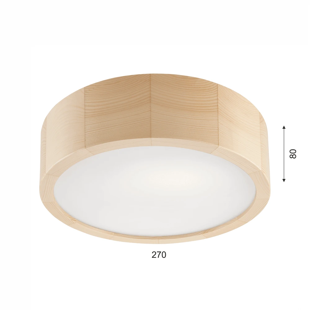 • Hochwertige Deckenleuchte 27cm E27 in Kiefer aus Holz und Glas.