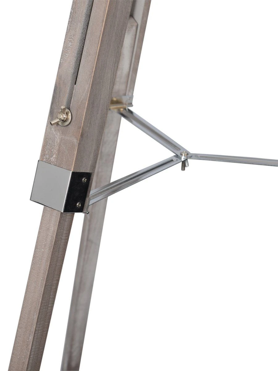 Gefertigt aus Kiefernholz und Metall ist die Leuchte mit Standfüßen in Stativform ein absoluter Blickfang für Ihre Wohnräume. In Kontrast zum Holz runden die chromfarbenen Details im Lampenschirm und am Ständer das Gesamtbild der Leuchte ab.