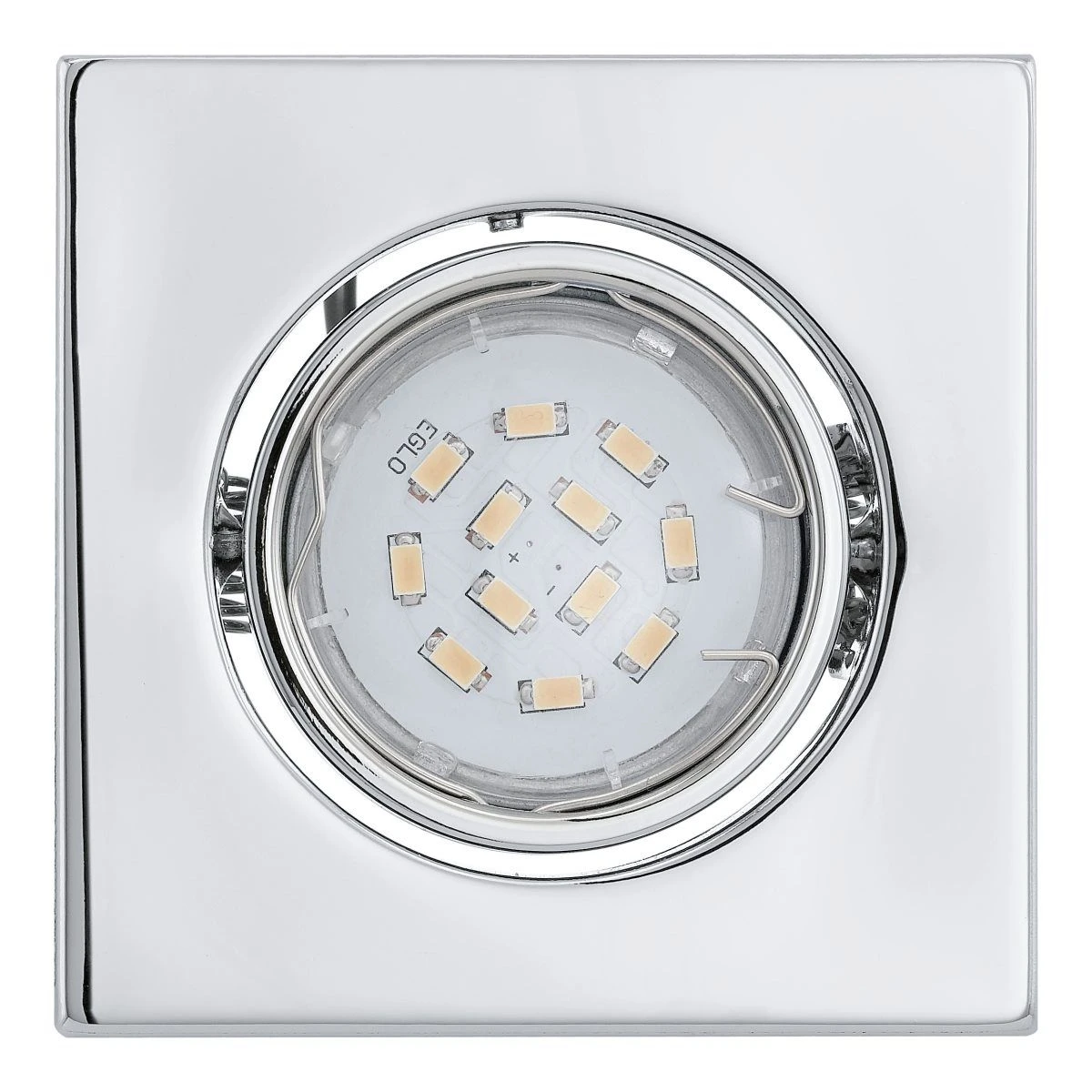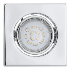 Diese eckige Einbaulampe in der Ausführung chrom hat die Maße 9,5×9,5cm und eine Einbautiefe von 11cm wobei der erforderliche Ausschnitt 7,6cm beträgt. Gefertigt wurde die Leuchte aus Metall von dem Leuchtenhersteller Eglo.