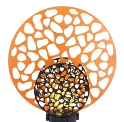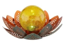 LED Solarleuchte Flache Scheibe Mit Dekorbögen Und Glaskugel Rostfarben Amber 300mm Von Globo