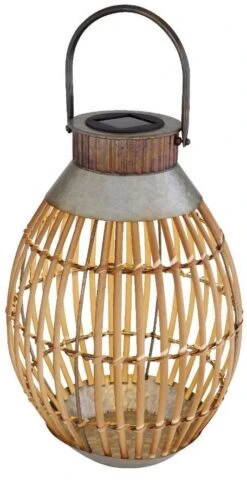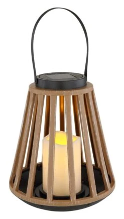 LED Solar Laterne Rund Kunststoff Holzoptik 20×33,5cm Von Globo