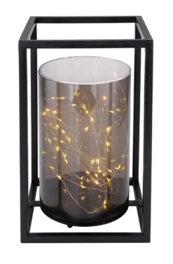 Solar Laterne Innen Mit LED Kerze Metall Rostfarben 13x13x50cm Von Globo