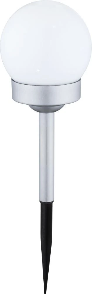Dank dem silber-metallic farbenen Erdspieß läßt sich die Solarleuchte sicher im weichen Gartenboden verankern.