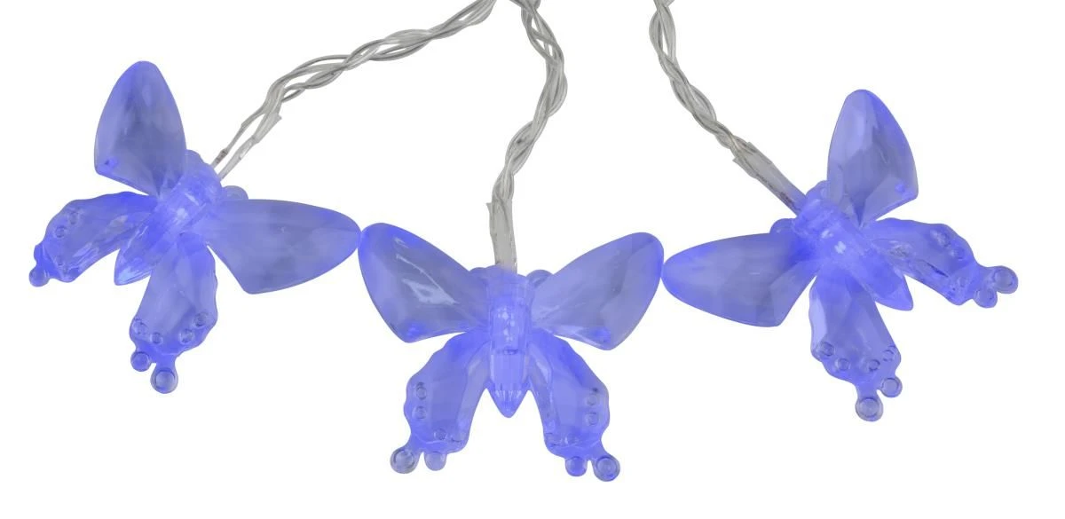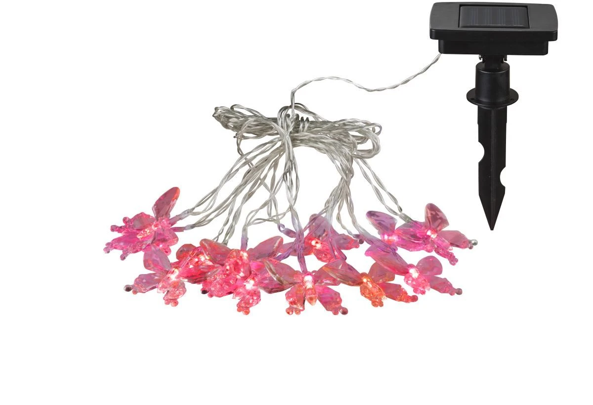 Diese insgesamt 4,7m lange Solarlichterkette mit zehn 5x6cm großen transparenten Schmetterlingen wurde aus Kunststoff gefertigt. Sie eignet sich perferkt um ein stimmungsvolles Ambiente im Garten zu erzeugen.