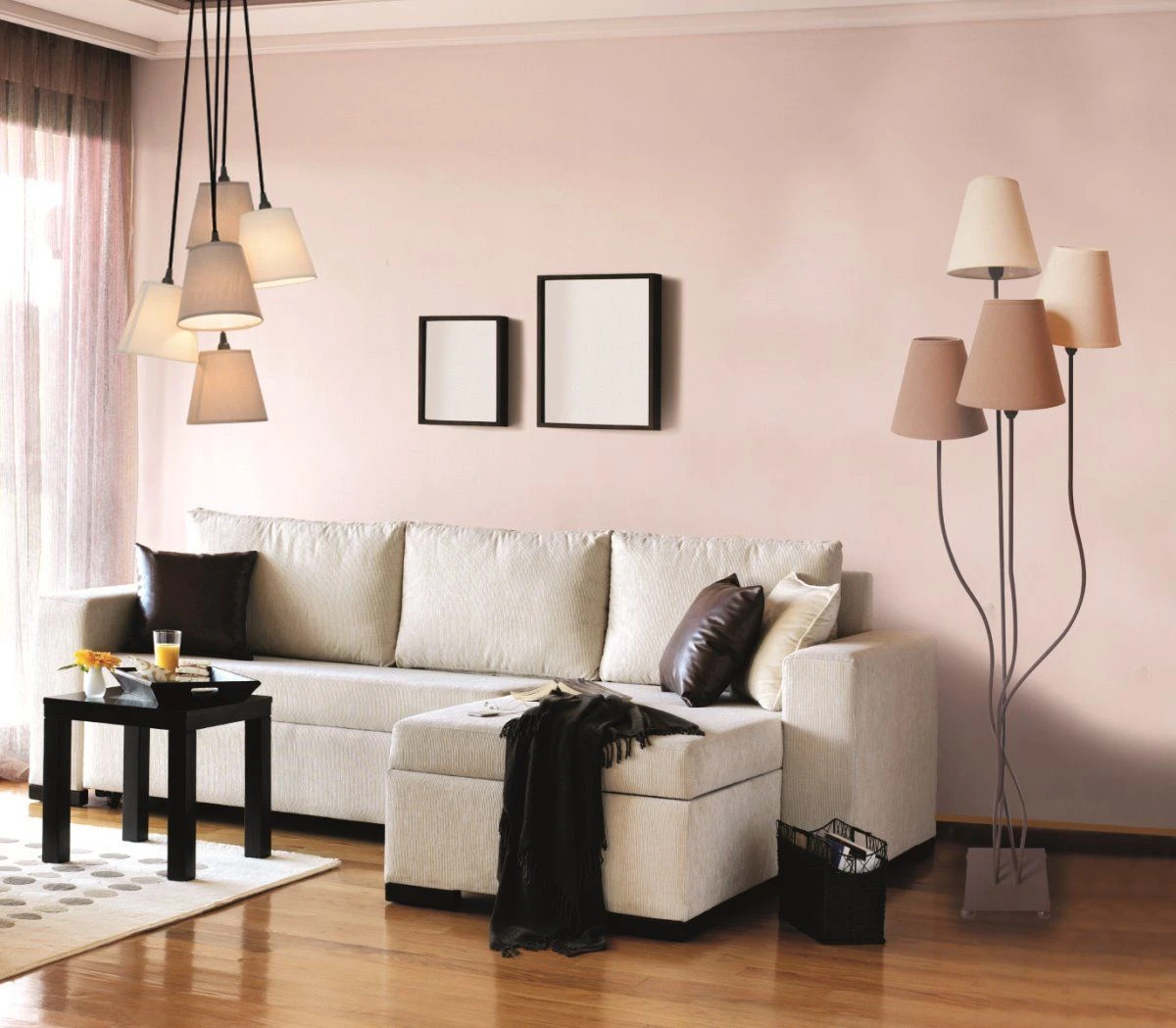 Ausgestattet mit fünf E14-Fassung haben Sie zudem die Möglichkeit, die Leuchte mit Leuchtmitteln Ihrer Wahl mit max. 40 Watt auszustatten. So können Sie die Beleuchtung im Wohnzimmer ganz nach Ihren individuellen Wünschen anpassen und sorgen so für eine entspannte Atmosphäre. Der durch die Lichtwirkung entstehende Farbkontrast setzt dabei trendige Akzente. Wohingegen die schlichten Textilschirme in Ihren Räumen für ein gemütliches Flair sorgen.