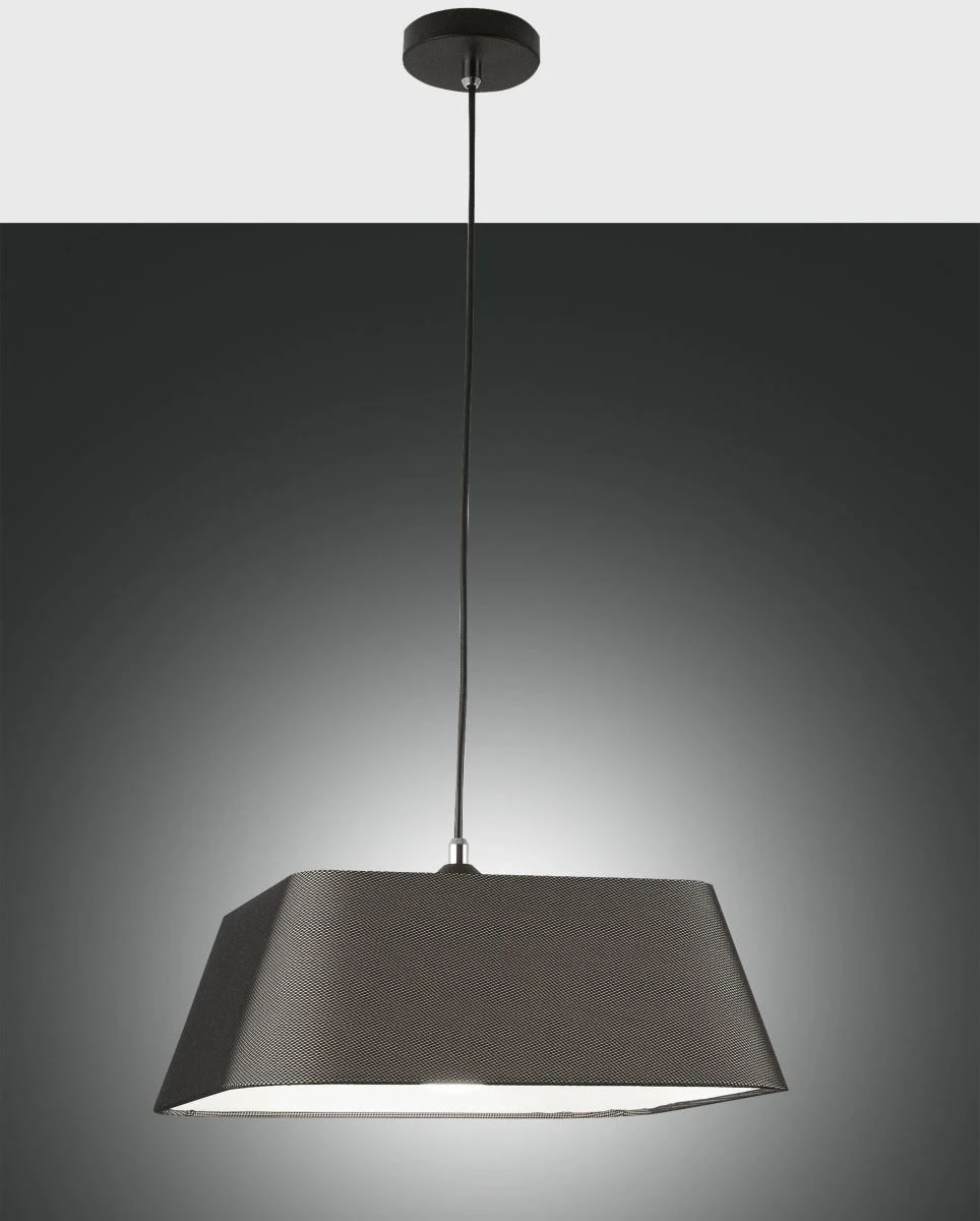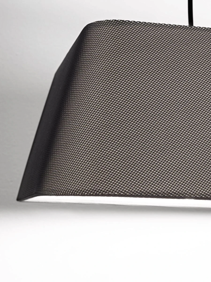stylische Pendelleuchte mit hochwertigem Stoffschirm unter aufwendiger Netzkombination