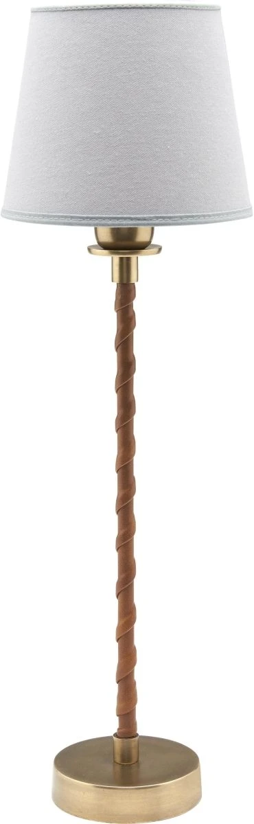 Tischlampenfuß Nora aus Metall im antikem Messing-Finish mit Kunstleder um die Stange gewickelt. Schönes schlichtes und klassisches Design.