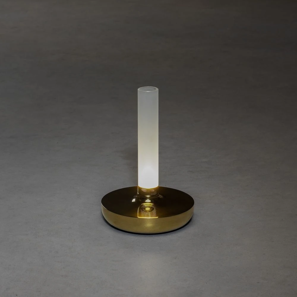 Verbringen Sie wundervolle Zeit mit Ihren Freunden auf Ihrer Terrasse/Balkon – bei passender Beleuchtung. Die aufladbare Tischleuchte Biarritz ist die perfekte Ergänzung bei einer Plauderei unter Freunden. Sie zaubert mit ihrer wechselbaren Lichtfarbe sogleich eine angenehme Atmosphäre. Die Leuchtenfamilie Biarritz von Konstsmide, mit einem erstklasssigen Design, gehört zu den akkubetriebenen Outdoor-Leuchten. Auf der Unterseite des Fußes kann eine USB-Ladestation angebracht werden, welche dem Lieferumfang angehört. Der Akku versorgt die inkludierte LED der Tischlampe nach voller Aufladung bis zu 9h mit Energie. Die modern gehaltene Tischleuchte Biarritz, welche auch als Vase verwendet werden kann, vereint satiniertes zylindrisches Glas mit einem runden Fuß aus goldfarbenem rostfreien Stahl. Dank satiniertem Schirm erhalten Sie hier ein dekoratives Leuchtobjekt für Ihren Tisch, welches ein angenehm diffuses Licht spendet.