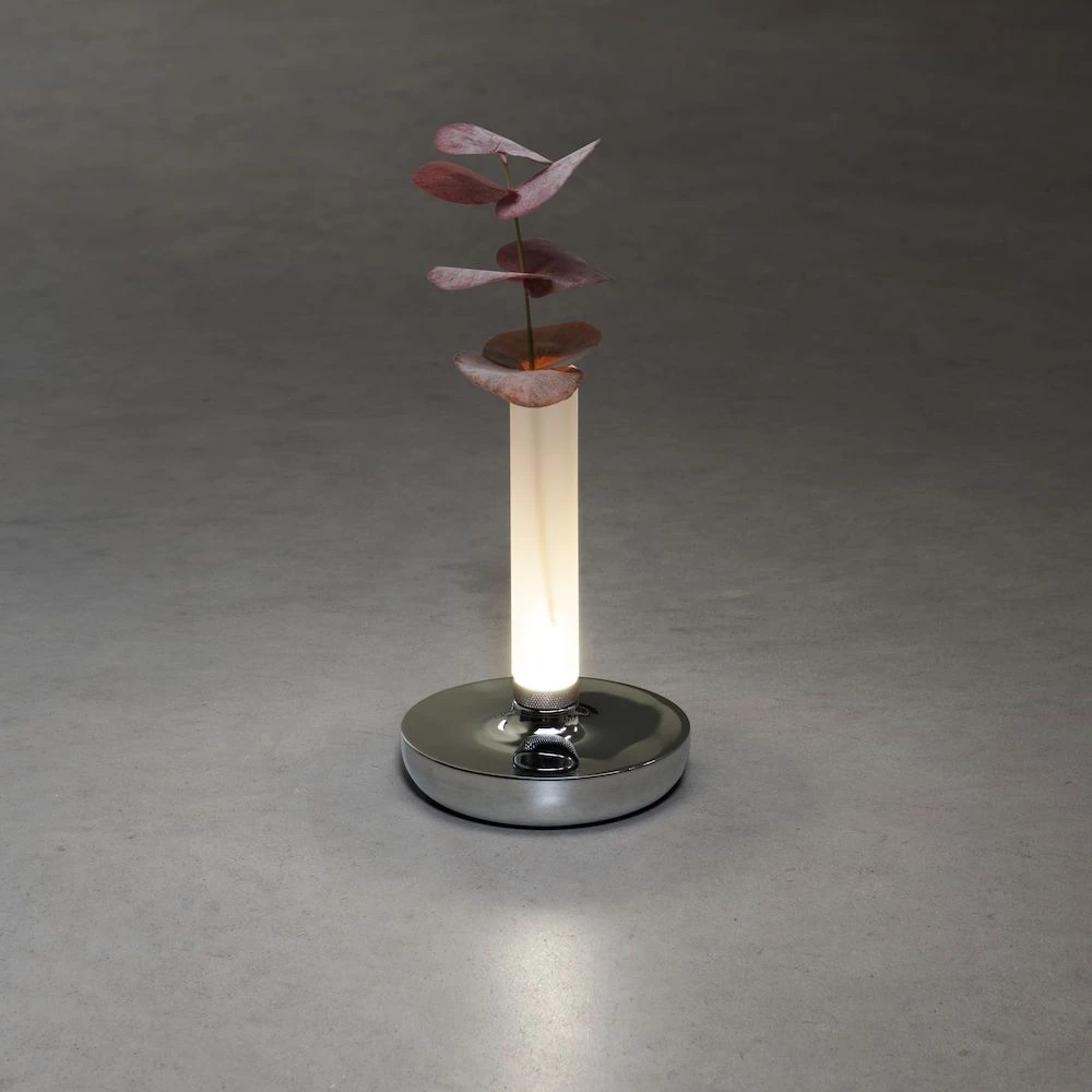 Die Besonderheit dieser Lounge-Lampe – man kann sie mit einer passenden Blume oder Pflanze (nicht inkl.) bestücken und als beleuchtete Vase benutzen. Kreieren Sie also einen unvergesslichen Abend mit Lichtschein und Blumen! Und sollte es draußen doch einmal ungemütlich werden, dann schnappen Sie sich Ihre Akkuleuchte und machen es sich drinnen bei wundervollem Licht gemütlich. Sie müssen beim Umsetzen nicht einmal nach einer neuen Steckdose suchen, der Akkubetrieb macht es möglich.