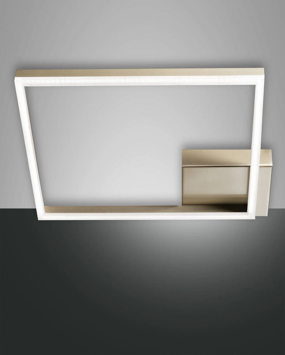 Diese schlichte aber zugleich stilvolle rechteckige dimmbare LED Deckenleuchte besteht aus einem leuchtenden Rahmen in Gold edelmatt mit Methacrylatabdeckung der am einem 170 mm ebenfalls in Mattgold-Finish großen Metallgestell angebracht ist. Die 3510 Lumen verbreiten ein angenehmes warm weißes Licht und sind zudem noch Energiesparend.