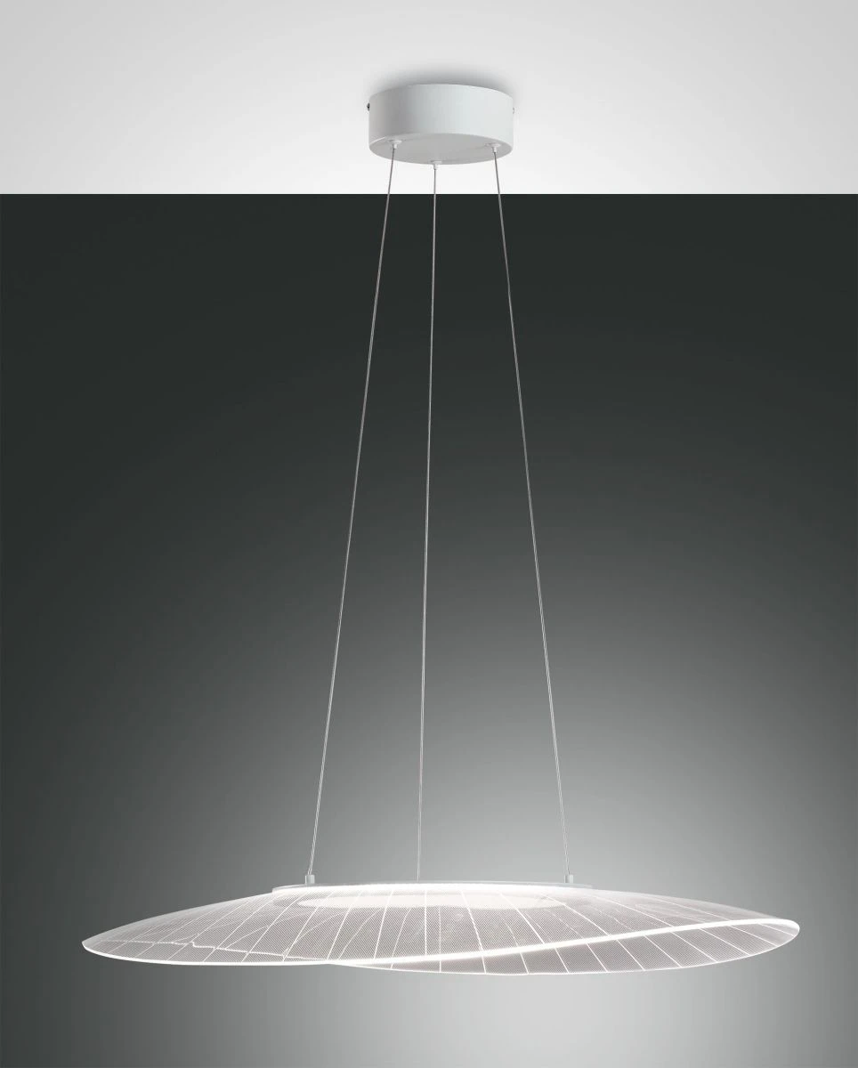 Die raffiniert gestaltete Pendelleuchte Vela von Fabas Luce zeichnet sich durch einen sanft geschwungenen ovalen Acrylschirm aus, welcher in der Mitte ein blendfreies LED verbirgt. Der in seiner größten Ausdehnung 780mm betragende weiß transparente Leuchtenschirm ist höhenverstellbar von 500 bis max. 2000mm. Dies ermöglicht eine optimale Ausleuchtung mit diffusem Licht und sorgt somit für eine gemütliche Wohnatmosphäre. Zudem ist es möglich das integrierte LED mittels Phasenan- und Abschnittsdimmer zu dimmen. Bitte beachten Sie, das der dazu benötigte LED Dimmer nicht im Lieferumfang mitinbegriffen ist.