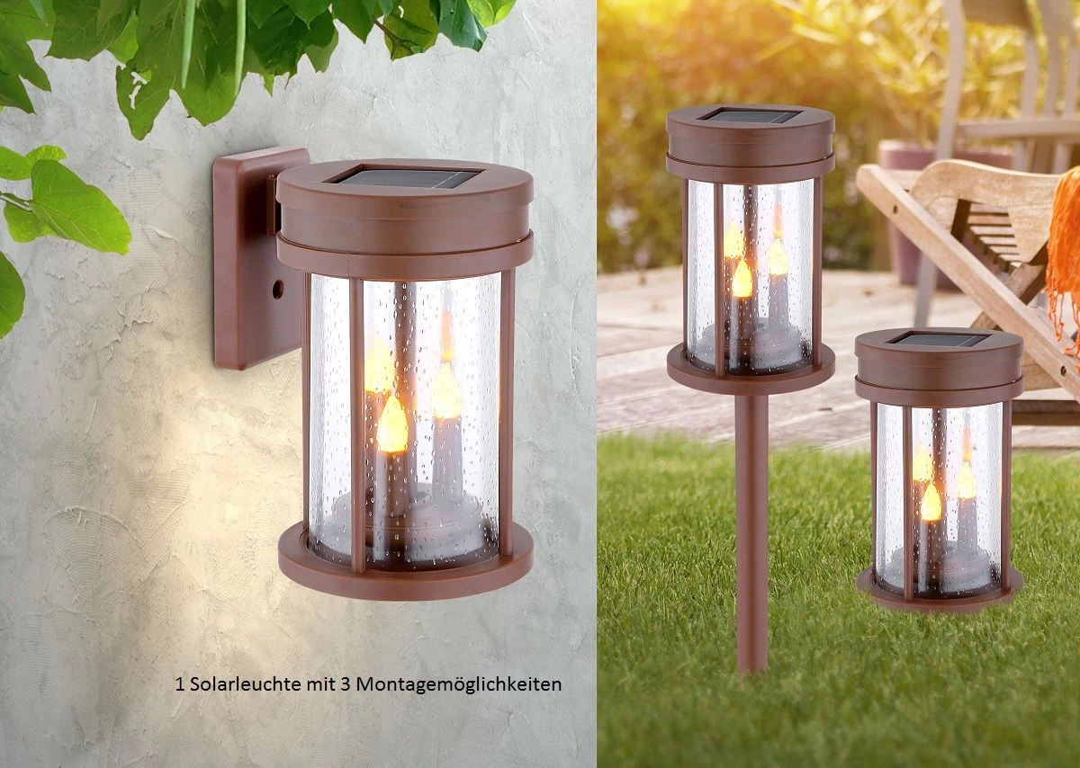Die Solarleuchte kann entweder auf einem Tisch des Balkons gestellt werden, Dank Wandhalterung, welche im Lieferumfang enthalten ist, ist sie perfekt als Wandaussenleuchte einsetzbar und mittels Erdspieß, ebenfalls im Lieferumfang enthalten, können Sie die Laterne ins Blumenbeet bringen.