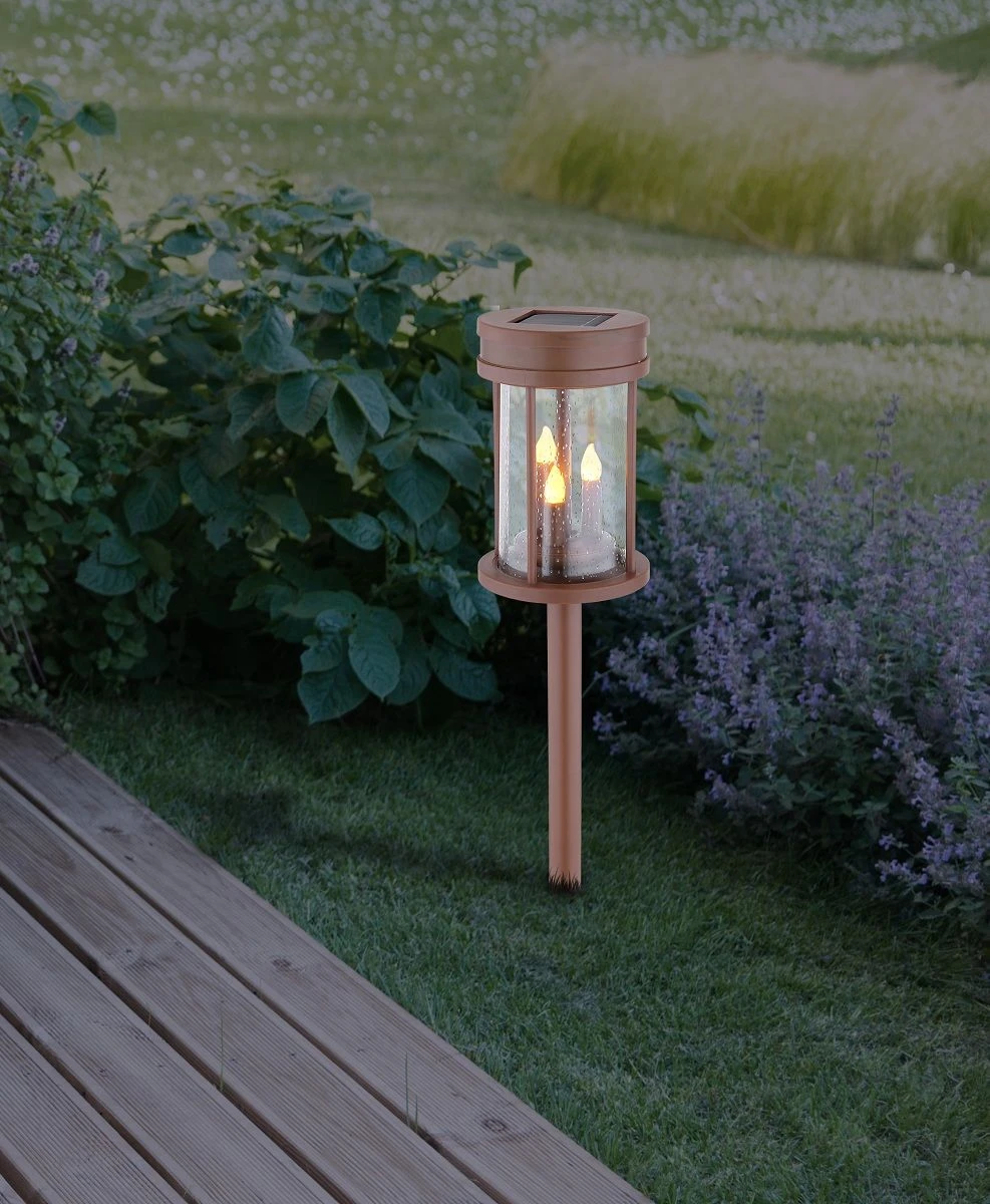 Dekorieren Sie immer wieder einmal neu, dann werden Sie diese attraktive Solarleuchte aus rostfarbenem Kunststoff lieben.