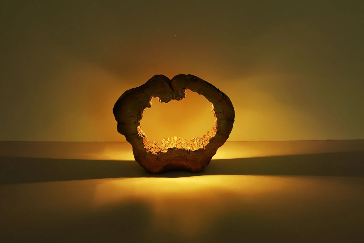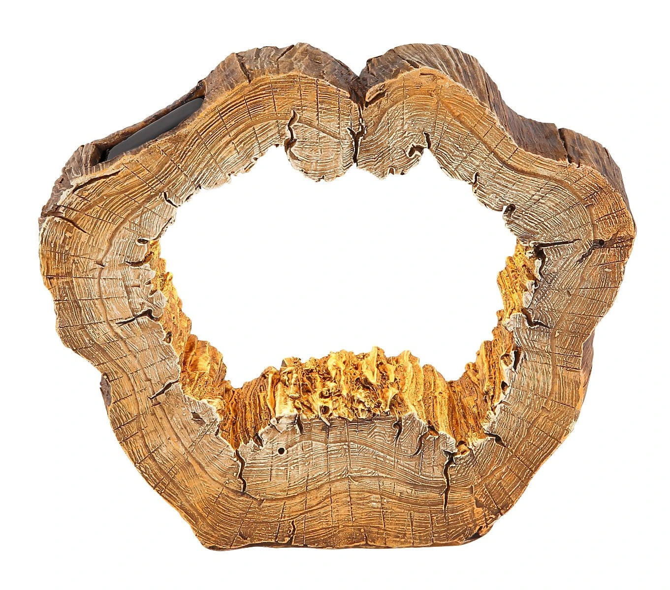 Beeindruckend strukturiert ist die Innenwand des Loches. Besonders wenn die eingearbeiteten 20 LEDs in Betrieb genommen werden und die angrenzende Struktur des Baumstammes in warmweißes Licht tauchen.