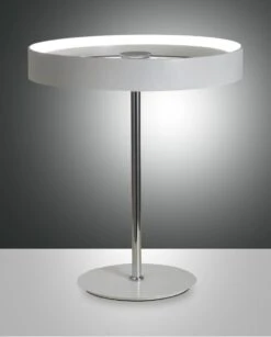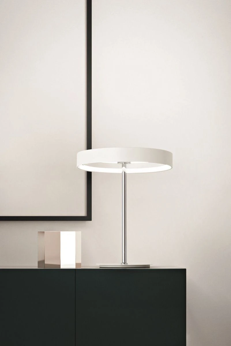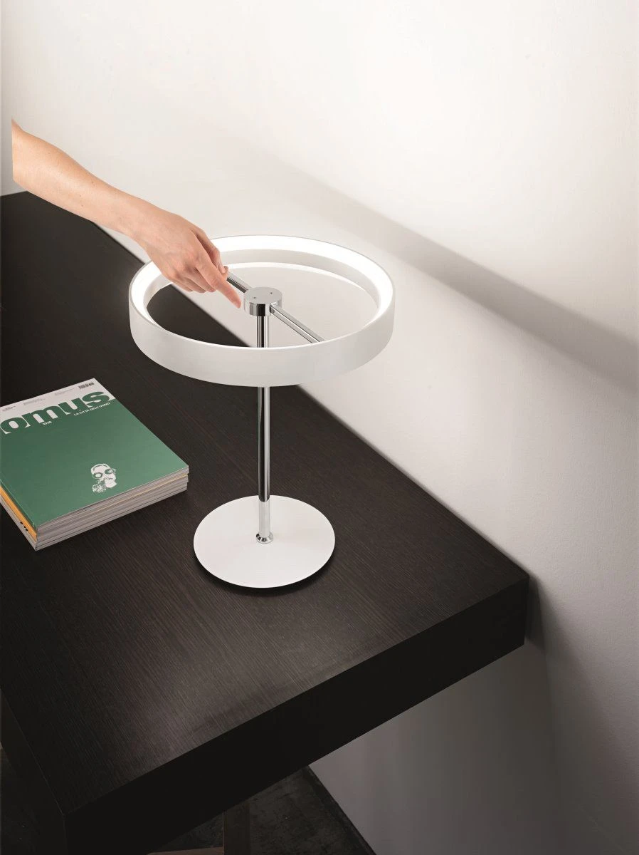 puristische LED-Tischleuchte mit verdecktem, doppelten Lichtring in edler Farbgebung, mit Tastdimmer