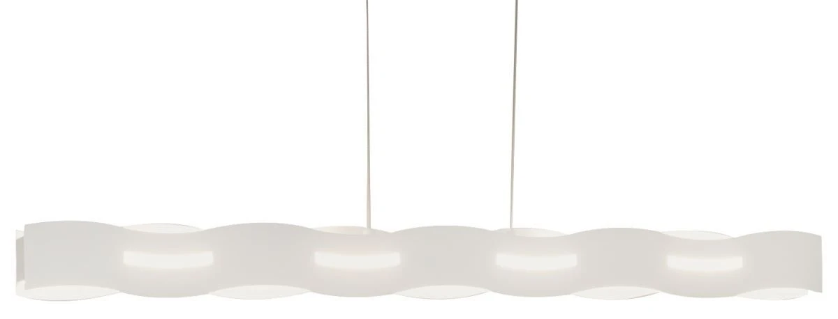 Die wellenförmige Hängeleuchte „Wave“ der Marke ECO-Light, kommt in einem sehr stilvollen, modernen Design. Das Leuchtmittel scheint durch 2 Aussparungen an der Vorderseite der Lampe, sowie aus den gewellten Seiten heraus. Die weiße Leuchte strahlt warmweißes Licht bei einer Leistung von 35 Watt mit 2300 Lumen und ist individuell dimmbar.
