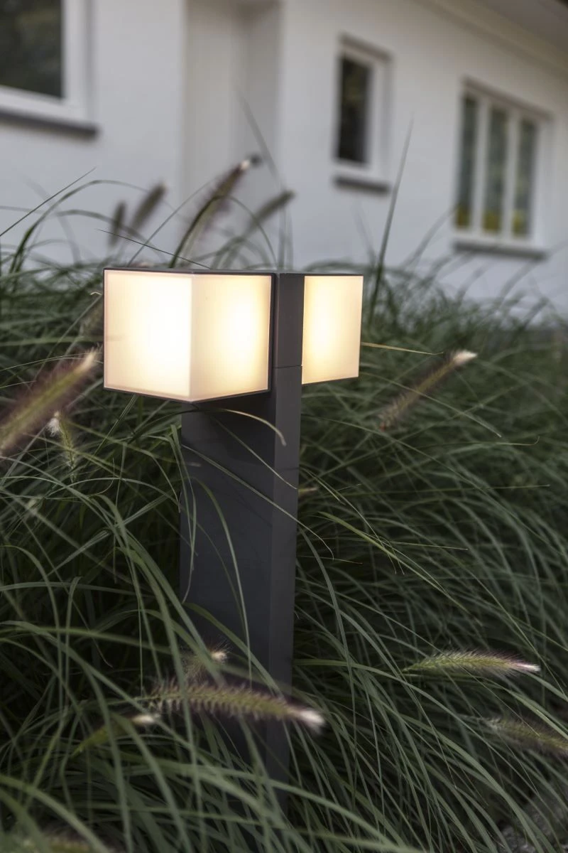 „Cuba“, ist eine sehr modern gestaltete Wegeleuchte der Firma Eco-Light. Der Sockel kommt in einer dezenten Anthrazit-Optik, welcher zwei 11,5 Watt starke Leuchtmittel trägt. Dieses strahlebn mit zwei mal 500 Lumen und bieten damit genügend Leuchtkraft um den gewünschten Außenbereich sowohl optisch als auch mit Helligkeit auszufüllen.