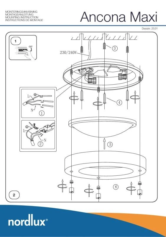 Nordlux Lampen und Leuchten Ancona Maxi E27 Gebürstet Stahl