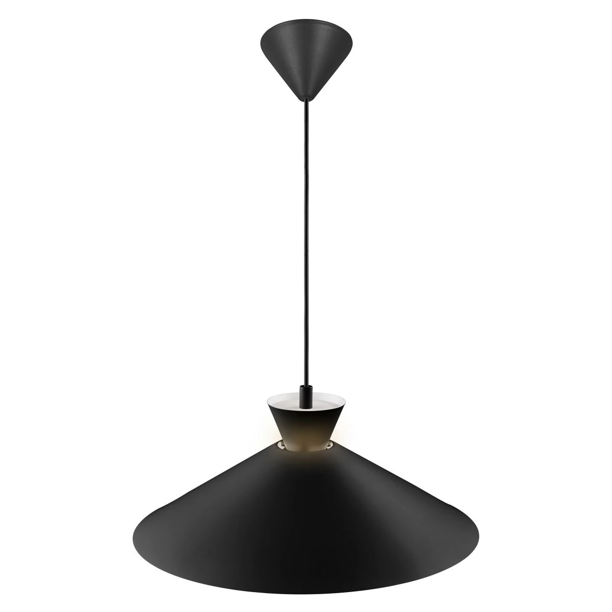 Die Dial Hängelampe aus schwarzem Metall hat ein luftig leichtes Design-Konzept. Der offene Schirm der Dial lässt aufgrund seiner geometrischen Form viel Licht durchscheinen und sorgt für einen dekorativen Uplight-Effekt.