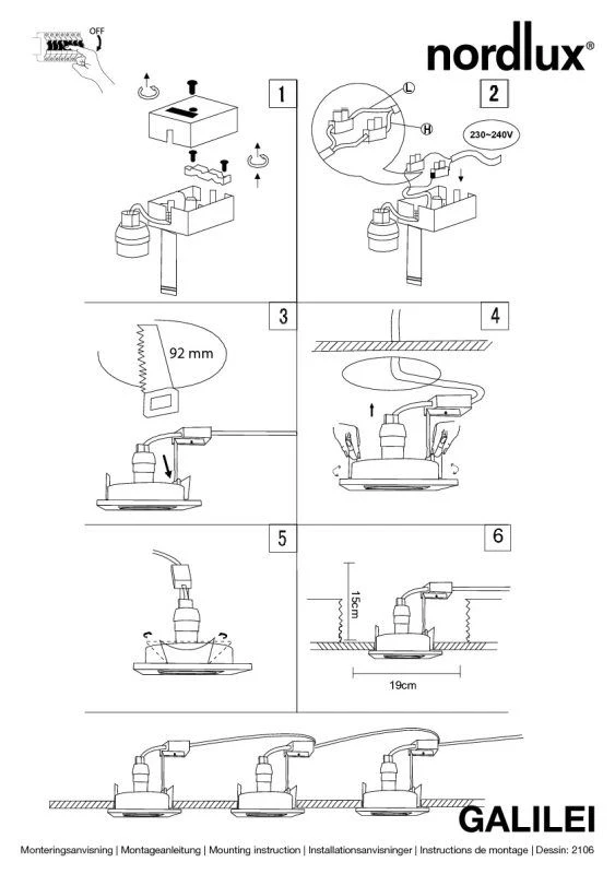 Nordlux liegt mit diesen Einbauspots aus der Serie Galilei im Trend der Zeit. Das Leuchtmittel GU10 kann leicht bis zu 35° bewegt werden.