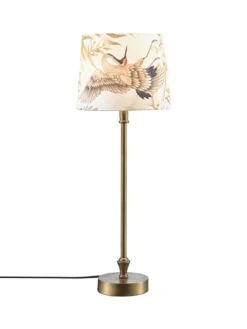 PR Home Liam Schmale Fensterbank Tischlampe Chrom Textilschirm Blau Vogel E27 59x20x20cm