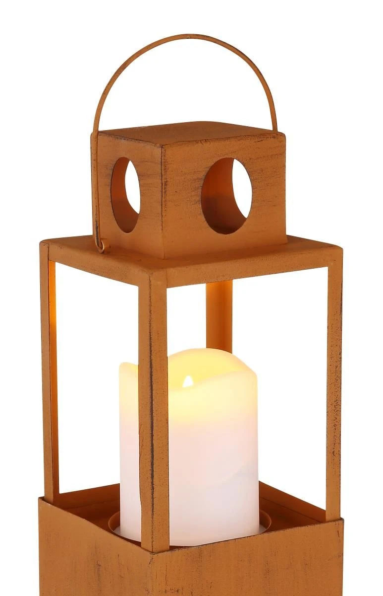 Leicht lässt sich dies dank einfach zu installierender Solarlampen realisieren. So können Sie ruckzuck Sie für eine stimmungsvolles Ambiente sorgen mittels dieser 13x13x50cm hohen Solar Laterne in Rostoptik.