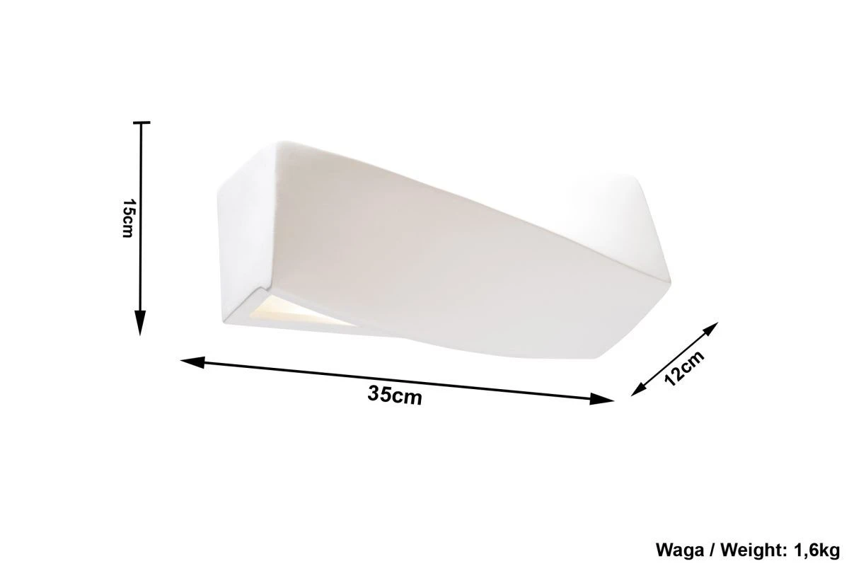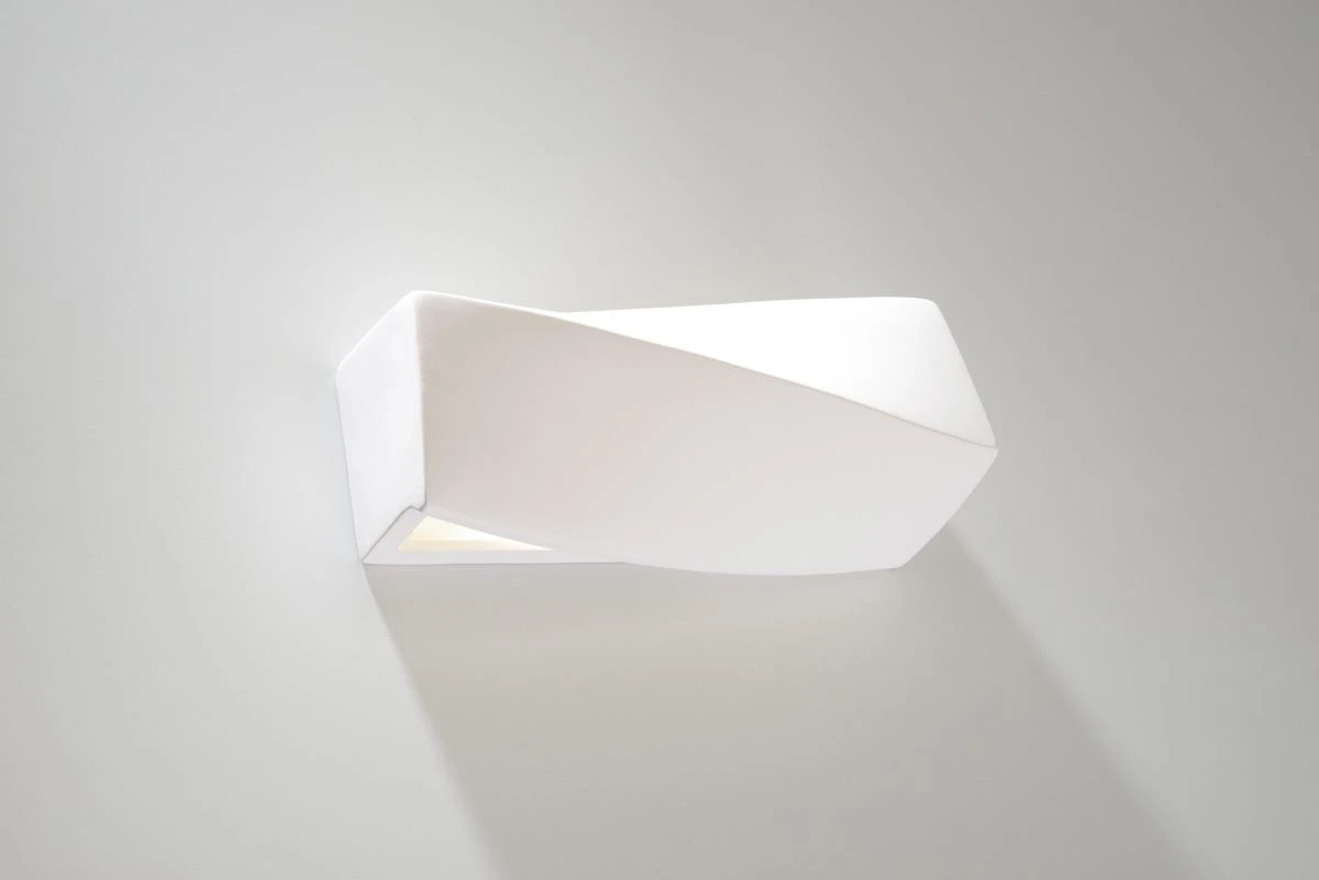 Die außergewöhnliche 300mm lange Keramik-Wandleuchte überzeugt hauptsächlich durch ihre interessante, gebogene Form, bei der es scheint, als hätte man die Leuchte einfach mal in sich verdreht. Bereits ohne diese moderne Wandlampe ein zu schalten sorgt sie daher für Aufsehen.