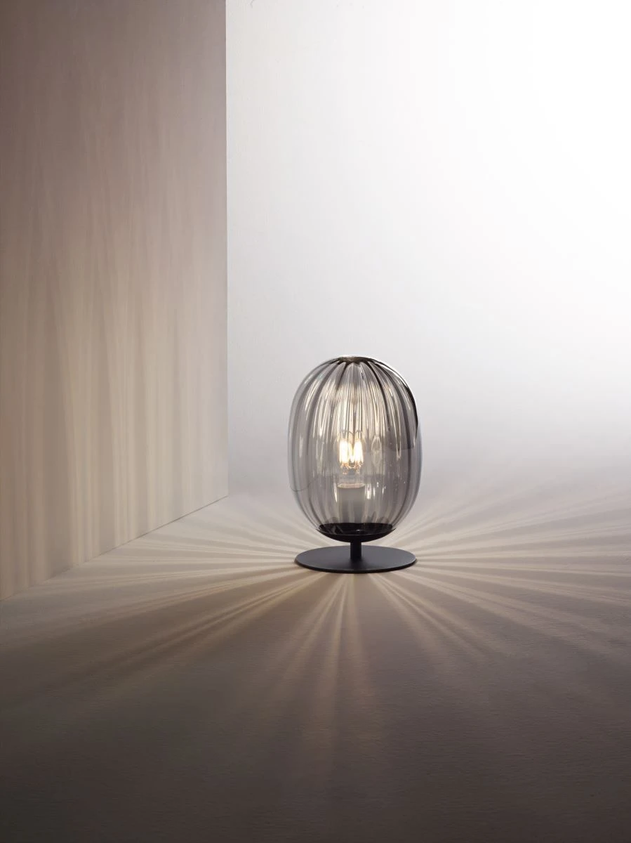 moderne Trend-Tischleuchte mit geblasenem Fume-Glas in edler Optik